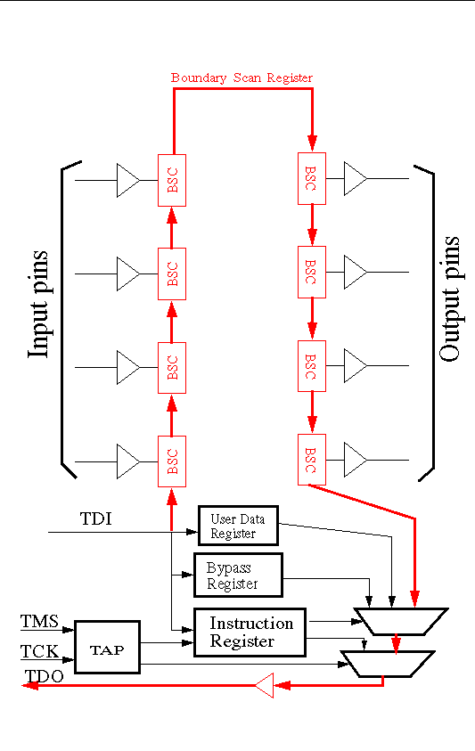 An excellent primer on IEEE Std 1149.1 JTAG is available at TI.A boundary scan architecture is roughly shown below: